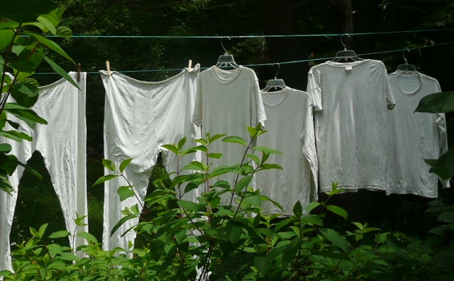 Sometimes it is possible to detox regular clothing. For mildly sensitive people it might just take a few regular washes with a tolerable detergent. For more sensitive people, a more involved protocol may do the trick. For others, we often end up without much in the way of clothing and bedding, because even the trace chemicals can be too much.