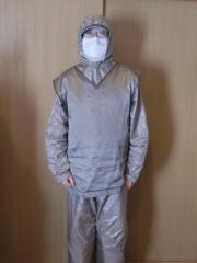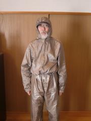 Wear electromagnetic wave protection suit. (MS750) Material: Thin silver coating parachute nylon fabric. High-frequency electromagnetic wave shield cloth. Microwave attenuation rate:in 800MHz ~ 18GHz, more than 10dB (90%). Production: Germany Sewing: Germany or Japan