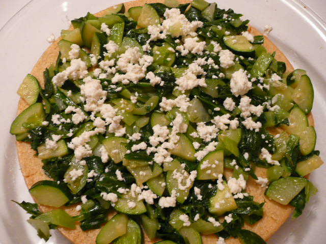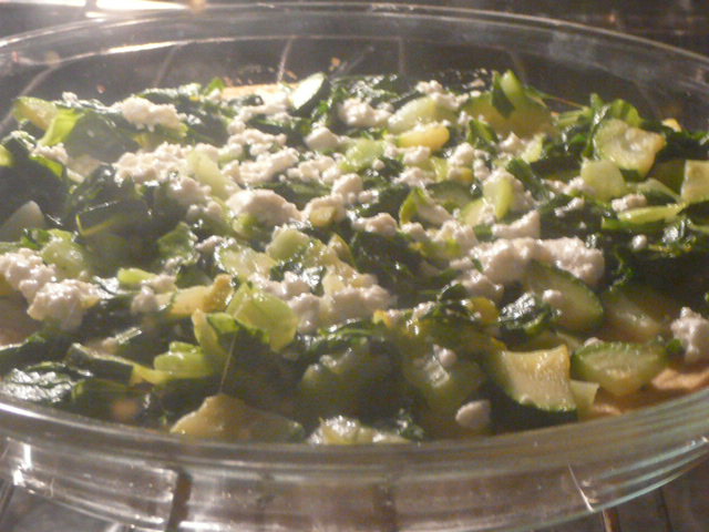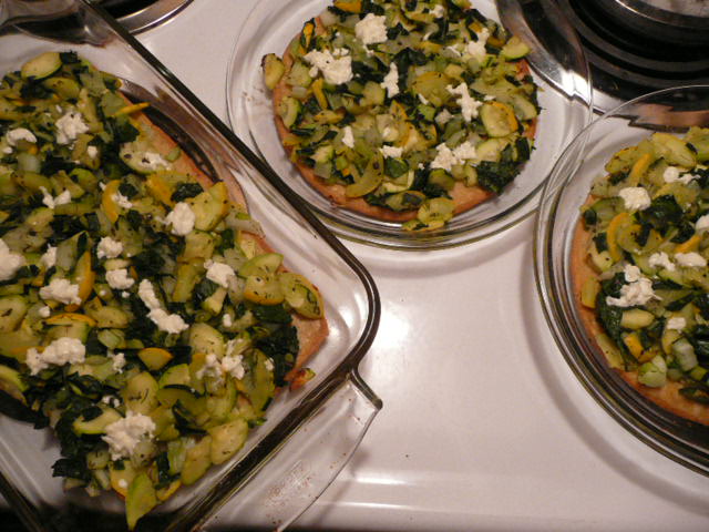 This one had shallot in the crust, with squash, chard and goat cheese topping. YUMMY!