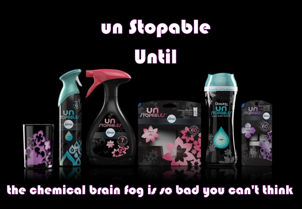 If people use these products, there’s absolutely no way they can show up to work fragrance-free, or to the child’s fragrance-free daycare or school, or to church, as the chemicals will be embedded in all clothing, in hair and pores, and in everything else that has been in the unfortunate home (like shoes, purses, papers, books, food, and pets)