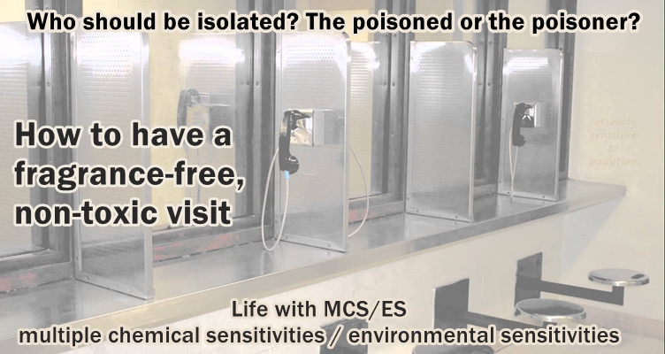 To follow doctors orders, and to have some quality of life (like the ability to look after ourselves), when others at work or elsewhere won’t stop using toxic products,  we have to stay isolated in our homes (if we’ve found a safe one).  It’s just like being in prison… but for crimes we did not commit.