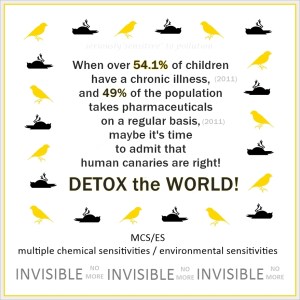 Don’t get me wrong, I do see a need for some of the skills and tools in those programs, because many people have never learned them and better self care is essential for quality of life, but even the best self care does NOT remove the causes for these disabling health conditions, nor do the programs address the systemic discrimination and accessibility barriers, or the every increasing toxicity of everyday foods, products and materials.