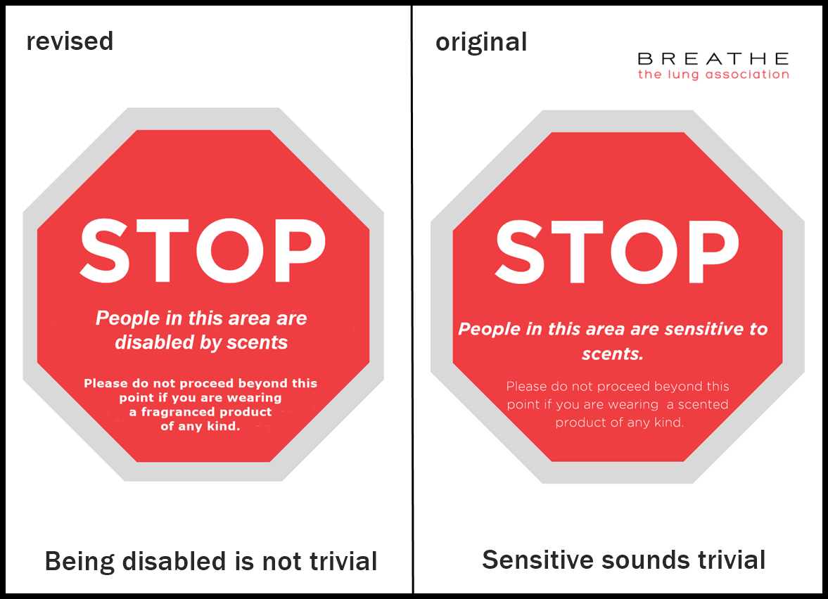 Of course, the lung association didn’t come up with the term “sensitive”, it’s what is used in human rights laws, but it seems to have created an impression in the public’s mind that chemical and environmental sensitivities are trivial, and not disabling or even life threatening like they can be.