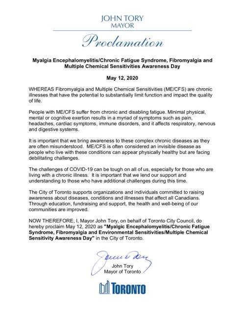 Toronto’s Mayor John Tory has lent (not given) his support with a Proclamation for for Awareness Day: