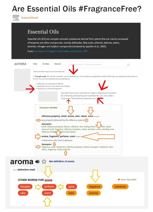 That however is not the main point here, which is that essential oils are NOT fragrance-free, and they are NOT appropriate for fragrance-free spaces, which have come about to protect people from harm.