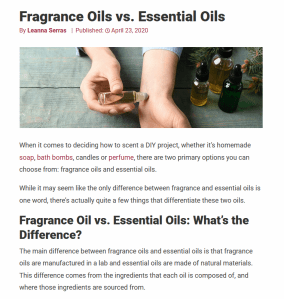 Fragrance Oils vs Essential Oils – screenshot from fragrancex