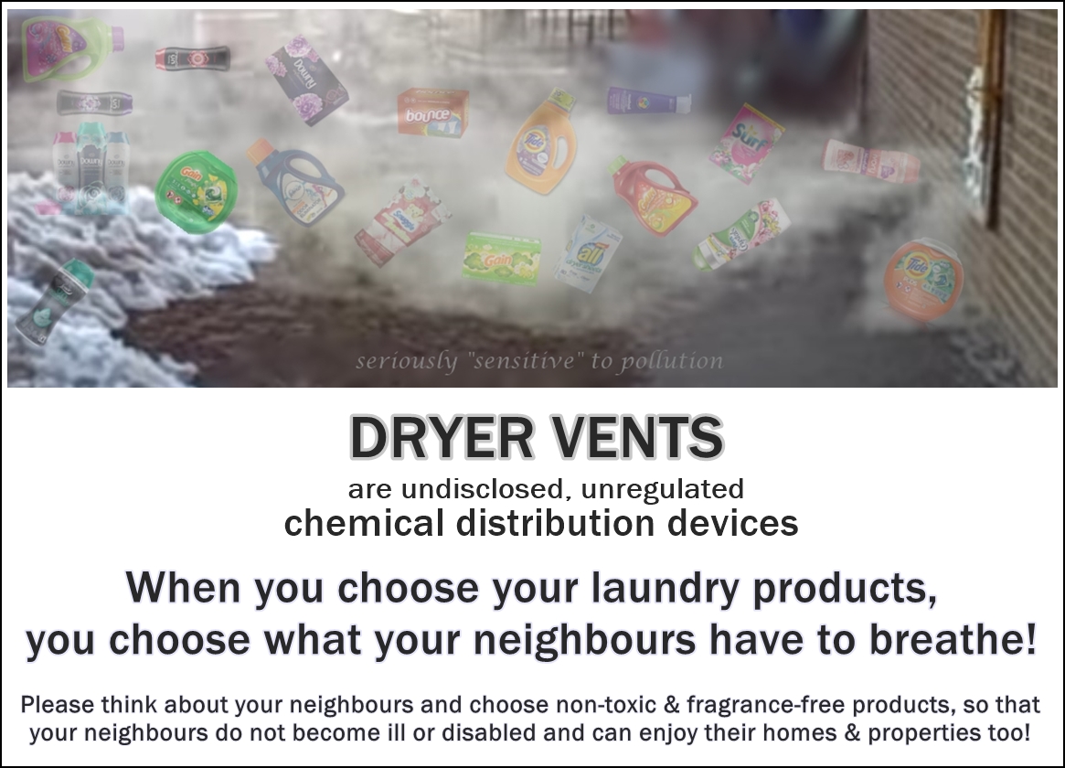 A growing number of people (millions, not handfuls) cannot enjoy walking about their neighbourhoods, sitting or working in their own outdoor spaces, or even open the windows of their homes due to the harmful pollutants released from dryer vents that were designed to emit moisture, not drifting toxic chemicals.