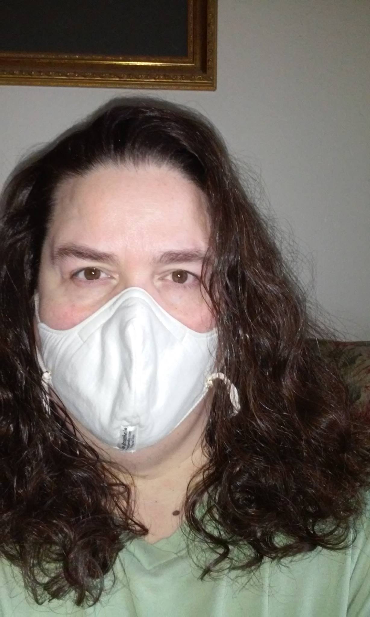“This is me in my mask. I keep it right next to me in case I have to put it on quickly. I used to only use it when I went to the grocery store, but I haven’t been inside a store since July 2015.  I still end up needing it for when people come in my home or my neighbor’s laundry scent comes in.”