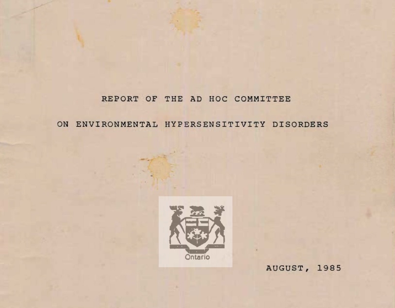 MCS/ES is not new. Over 30 years ago, the Province of Ontario created the “Committee on Environmental Hypersensitivity” and appointed George Thomson, a former provincial court judge, as chairman, with a mandate to study and “advise the Ministry of Health on the occurrence of environmental hypersensitivity in Ontario and on current methods of diagnosis and treatment. Further, the committee was to make recommendations to the ministry concerning future approaches to treatment and research that should be taken”